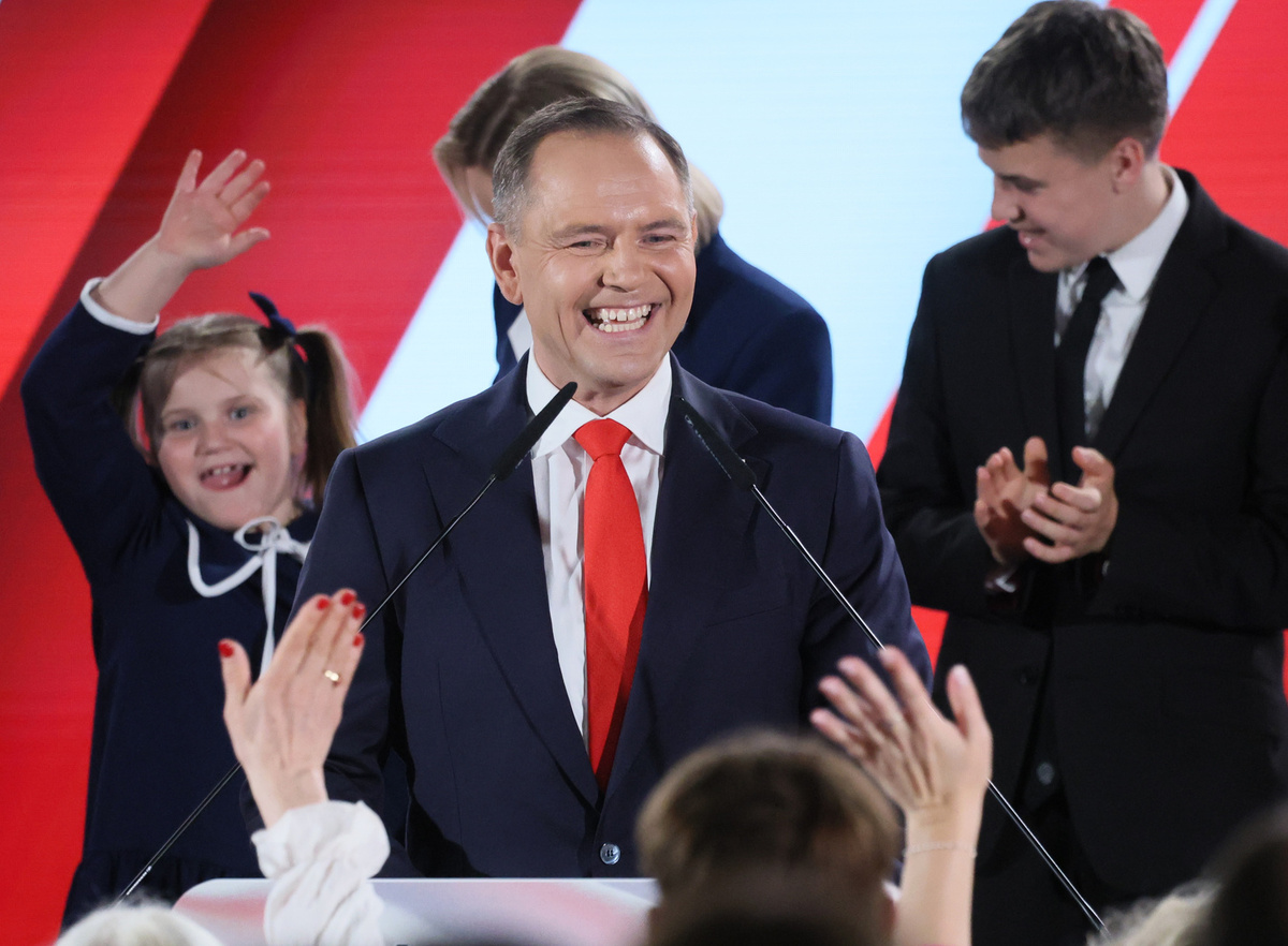 Во время торжественной речи избранного президента Польши Кароля Навроцкого внимание публики неожиданно переключилось на его младшую дочь. Как сообщает RMF24, восьмилетняя Кася Навроцкая затмила отца, став главной звездой трансляции. Видео с ней набрало миллионы просмотров. Пока новый глава государства произносил победную речь, его дочь стояла рядом с родителями и строила забавные гримасы, играла с камерой, складывала руки в форме сердца. Девочка с двумя хвостиками ковыряла в зубах, постоянно что-то шептала матери и смеялась. Кадры с наследницей разлетелись по соцсетям, а в одной из них набрали более 14 миллионов просмотров. Пользователи создают мемы и добавляют к ролику забавную озвучку. Известно, что у президента есть жена Марта Навроцкая и несколько детей: Антоний, Даниэль и Кася. Напомним, что Кароль Навроцкий победил во втором туре выборов 1 июня с результатом 50,89% голосов. Его инаугурация запланирована на 6 августа. Ранее мы писали о том, что жена президента Франции Макрона дала