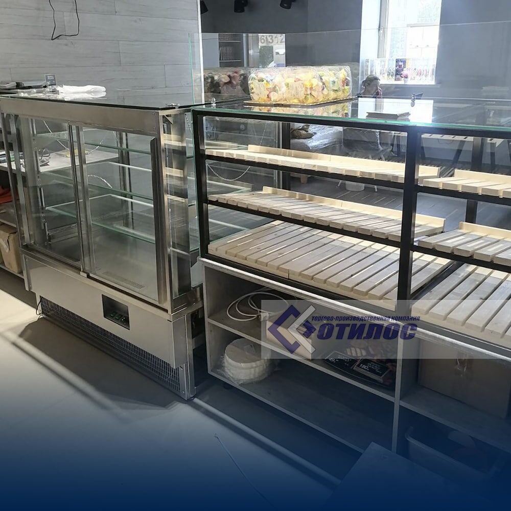 - Кондитерские витрины — узкоспециализированные, для десертов и тортов.