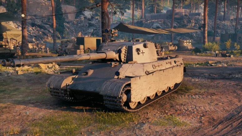 Закончим небольшой цикл двух стволов (британцы, Улан, TS-54) данным танком. Скрытый немец ВГшного обновления 1.29, единственный, который меня заинтересовал и который я бы хотел видеть на РуБай. Может, даже в другом корпусе. Почему я сделал эту оговорку? А сейчас узнаете. Данного танка никогда не существовало, он является изобретением КБ КВГ с применением технологий Скайнет, но... корпус у данного немца на 100% французский и взят от одного из вариантов AMX M4. Но надо отметить, что Е 65 немного короче. Даже двигатель в игре указан Maybach HL 275, который был создан Карлом Майбахом... уже после войны во Франции. Ходовая часть у французского немца больше похожа на Е 50, и это единственный элемент данного танка от машин Е-серии. Впрочем, башня немного напоминает оную на Кëнигтигре или Е 75, но растянутую в ширину и в длину для установки двух орудий. Можно сказать, что нейросеть нарисовала относительно правдоподобный, но не особо немецкий танк. И не попадающий по таймлайну в Е-серию. Спа