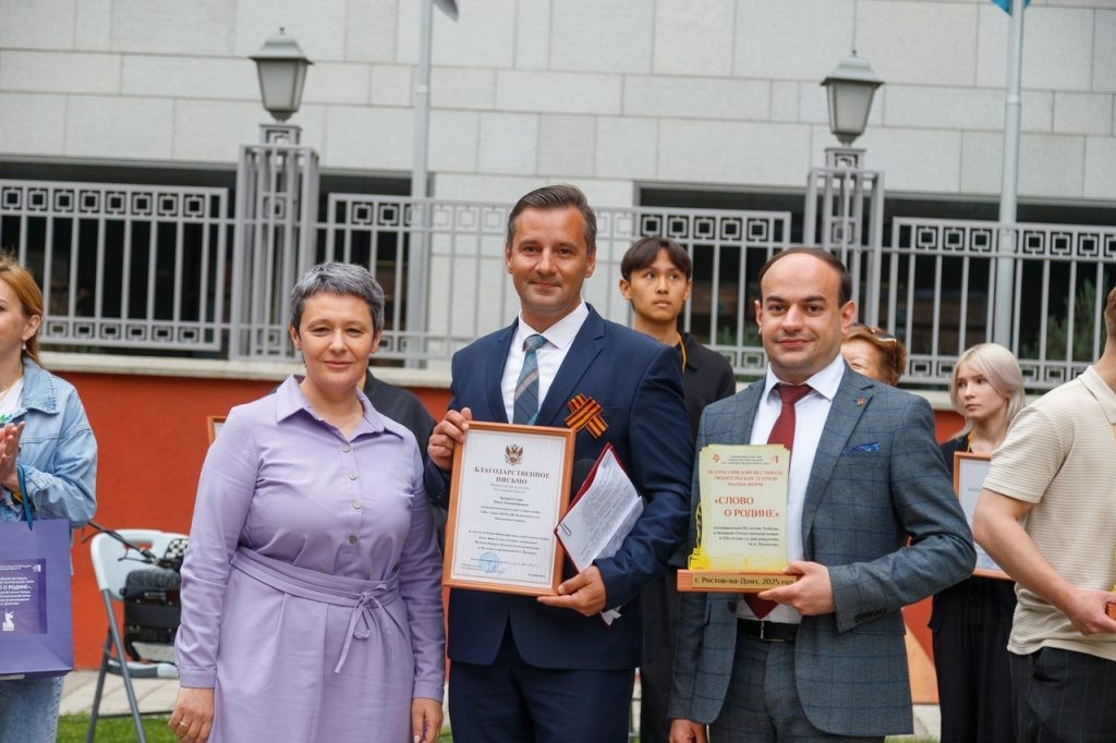 Яркой точкой в культурной жизни донской столицы стало закрытие первого Всероссийского фестиваля любительских театров малых форм «Слово о Родине». Церемония награждения, прошедшая 29 мая в исторических стенах «Шолохов-центра», собрала талантливые коллективы со всей страны и стала настоящим праздником театрального искусства. Фестиваль, посвященный двум знаменательным датам – 80-летию Великой Победы и 120-летию со дня рождения Михаила Шолохова, стартовал в Ростове-на-Дону по инициативе городского Управления культуры и Городского Дома Творчества при поддержке Российского государственного дома народного творчества им. В.Д. Поленова и Министерства культуры Ростовской области. Несколько дней сценические площадки города были отданы творчеству и патриотизму, звучало живое слово о героизме предков и любви к родной земле. В этот вечер на сцену для чествования поднялись делегации из 13 коллективов, представлявших Республику Адыгея, Калмыкию, Краснодарский и Ставропольский края, Волгоградскую, Воро