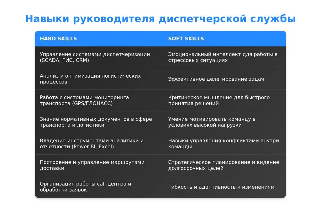 Анализ требований вакансии для профессии "руководитель диспетчерской службы"