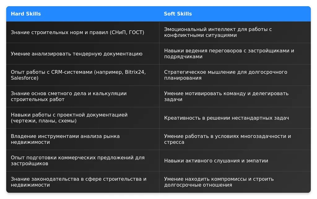 После адаптации: "Навыки ведения переговоров с застройщиками и управления клиентской базой в CRM."