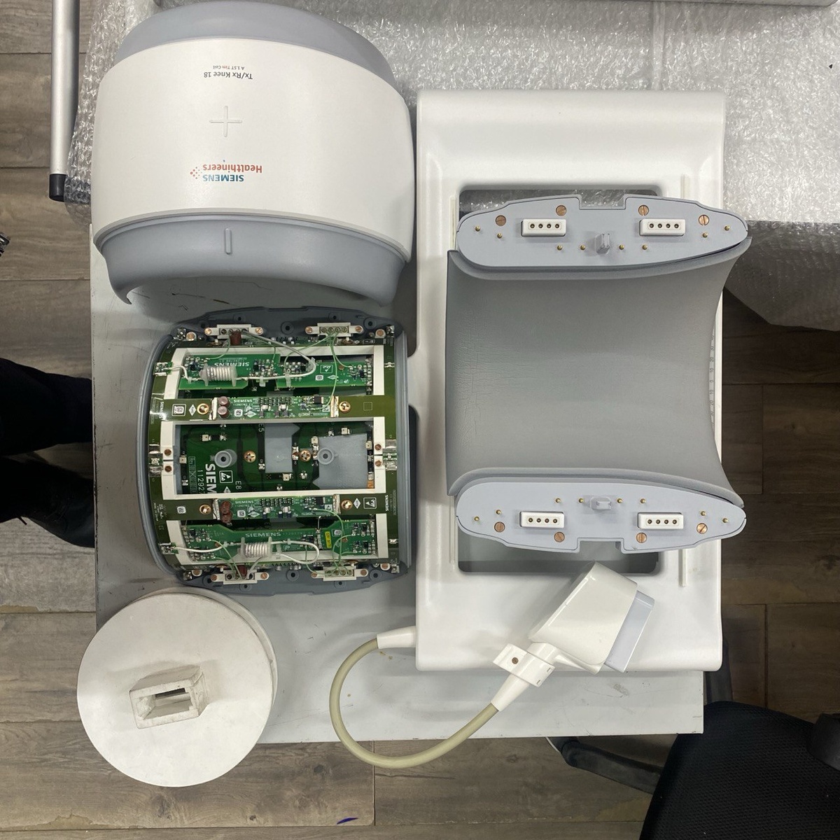 ⚠️ Неисправность: Нет возможности проводить сканирование на 18-ти канальной приемо-передающей коленной радиочастотной катушке TX/RX Knee 18. ✅ Проделанная работа: 1. Проведена первичная диагностика. В ходе внешнего осмотра катушки механических повреждений не выявлено. Очистка контактных поверхностей разъёмов как на стороне катушки, так и на столе пациента, не дала положительного эффекта — проблема сохраняется. 2. Был проведен сервисный тест “QA Coil Measure” 18-ти каналов катушки для проверки соотношения сигнал/шум. Значения в определенных каналах показали несоответствие нормальному диапазону. Был проведен компонентный ремонтс заменой неисправных радиоэлементов в предусилителях. Далее была проведена настройка приемо-передающего радиотракта на специализированном стенде и повторный тест QA Coil Measure. Катушка исправна. 👍 Tomograph.PRO - Мы лечим технику! Наш телеграм канал - https://t.me/tomograph_pro