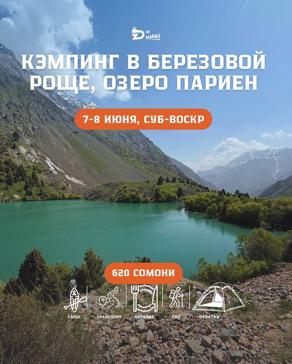 ☀️ 7–8 июня (сб-вс) 🏕 Поход с ночёвкой в березовую рощу + озеро Париен + сап ⠀ Проведи эти выходные в Каратагском ущелье — в удивительном месте с массивными березами, горной рекой и озером фей 🧚♀️ ⠀ 📍 В субботу нас ждет треккинг по живописной тропе (около 1 часа пути), установка лагеря в уютной роще, вечер у костра и ночёвка под звуки природы 🌿 ⠀ 🌄 Утром – поход к озеру Париен (6 км, ~1,5 ч), где нас ждут: 🏄 катание на сапе 🏊♀️ купание (для смелых) 🍵 горячий чай из горных трав ⠀ После — возвращение в лагерь, обед и спуск вниз. ⠀ 💼 Что включено: ✅ дорога, питание, гид, сап, палатки, спальники, трекинговые палки ⠀ 🎒 Что взять с собой: чашку, ложку, фонарик, повербанк, теплые вещи, дождевик, удобную горную обувь(ботинки) и хорошее настроение 😄 ⠀ 💳 Стоимость: 620 с 🥾 Сложность: 7/10 💺 Свободно: 8 мест ⠀ Не пропусти! Эти два дня могут стать лучшими в начале лета 🌿 📩 Пиши в директ, чтобы забронировать!