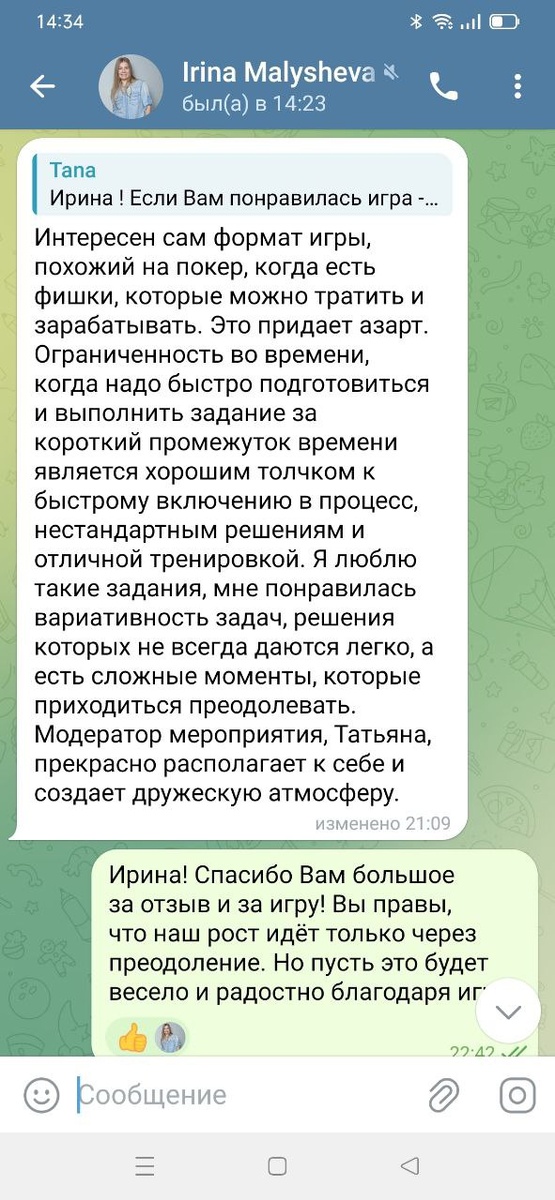 📝 Отзыв на игру от стилиста Ирины Малышевой 🌼🌻🌞