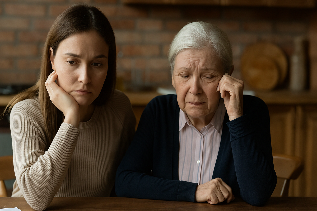 Она не заплакала. Просто закрыла шторы и пошла на кухню. Там, за круглым столом, сидела Людмила Ивановна — его мать. Седая, худая, с одной парализованной рукой. На ней был старенький халат, лицо усталое, взгляд растерянный.