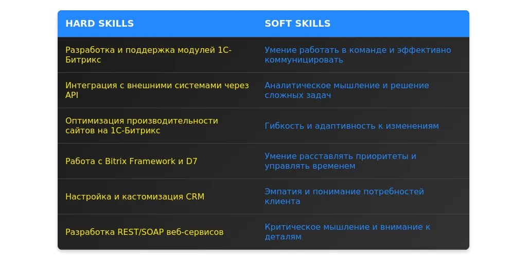 Анализ требований вакансии для разработчика 1С-Битрикс
