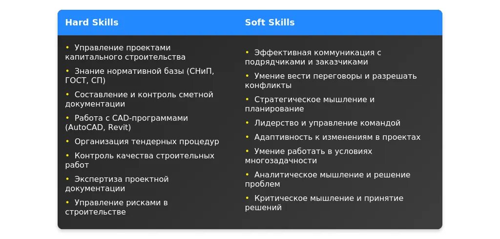 При анализе вакансии важно выделить ключевые требования, которые разделяются на обязательные и желательные. Обязательные требования обычно включают наличие профильного образования (например, строительное или инженерное), опыт работы в капитальном строительстве, знание нормативной документации и умение работать с проектной документацией. Желательные требования могут включать навыки управления проектами, владение специализированными программами (AutoCAD, MS Project) и знание английского языка.
