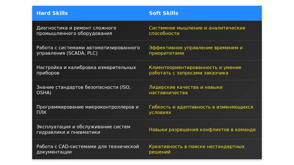 - Профессиональные достижения: Укажите сертификаты, пройденные курсы, участие в конференциях. Например: "Сертификат по обслуживанию оборудования Siemens (2025)".