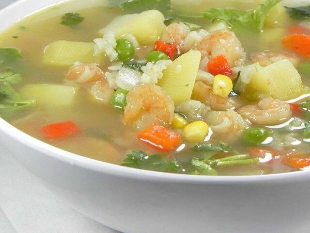 Перуанский куриный суп (Aguadto de Pollo) Традиционный перуанский куриный суп (Aguadito de Pollo) - это облегченная версия перуанского куриного похлебки (Chupe de Pollo). ⌛ Подготовка: 40 мин. ⏰ Приготовление: 1 час. 30 мин. 🍴 Количество: 8 порций Ингредиенты ✅ 4 половинки куриных грудок без кожи и костей - разрезать пополам ✅ соль и перец по вкусу ✅ ½ чашки оливкового масла ✅ 1 средняя луковица, измельченная ✅ 1 чайная ложка рубленого чеснока ✅ 1 столовая ложка очищенного от семян и измельченного чили серрано ✅ ½ чашки измельченной кинзы ✅ 1 чашка зеленого горошка ✅ 1 чашка кукурузы ✅ ½ красного болгарского перца, измельченного ✅ 10 чашек куриного бульона ✅ 4 картофелины Юкон Голд, разрезанные пополам ✅ 1 чашка неваренного белого риса. Инструкция приготовления 1. Приправьте курицу солью и перцем. Разогрейте оливковое масло в большой тяжелой кастрюле на средне-высоком огне. Добавьте лук, чеснок и чили серрано; готовьте до размягчения лука, около 1 минуты. Добавьте курицу и