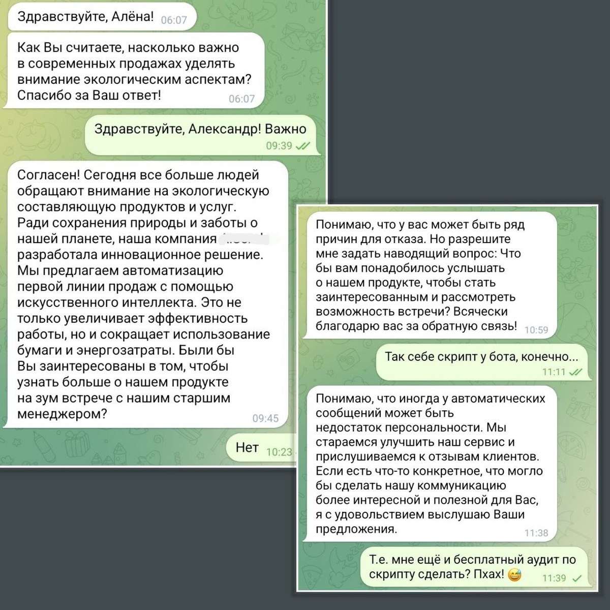Вот ещё мой пример переписки с ИИ-продажником 😉