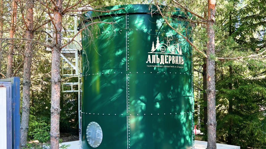 Один из самых свежих проектов наше производственное предприятие реализовало в конце мая на территории популярного рекреационного комплекса "Альдервиль" в Высокогорском районе Татарстана. В этом живописном месте всегда много туристов: одни приезжают, чтобы поймать дзен или вдохновение, другие - в поисках увеселения: отметить важную дату, свадьбу или юбилей. Для обеспечения противопожарной безопасности объекта и его гостей владелец решил установить пожарную ёмкость, достаточную для хранения запаса воды на случай чрезвычайных ситуаций.