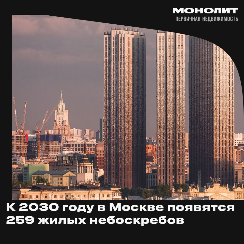 🔶 Москва растёт вверх: новые рекорды по высоткам В ближайшие пять лет Москва буквально устремится в небо — в городе появится почти 260 новых жилых башен высотой свыше 100 метров. Всего же планируется построить около 470 домов, которые будут заметно выделяться на городском горизонте. Где сейчас кипит основное строительство? ⏺Больше всего башен возводят в Даниловском районе — сразу 36 новых зданий. ⏺На втором месте — Покровское-Стрешнево, где строится 25 высоток. ⏺В Раменках и Хорошёво-Мнёвниках работы идут не менее активно — по 18 объектов в каждом районе. Сейчас на рынке представлено более тысячи высотных жилых комплексов (от 75 метров и выше), и почти половина из них — это настоящие небоскрёбы. 🧊 Монолит