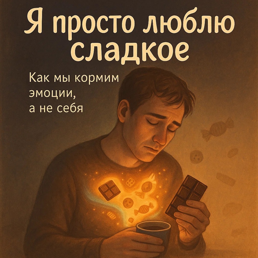 Привет мой друг ты снова на канале «Любопытный психолог». Здесь как обычно мы учимся лучше понимать себя и сегодня у нас сладкая и вкусная тема. Вы когда-нибудь ловили себя на том, что лезете в шкаф за шоколадкой не потому что голодны, а просто… ну, "просто захотелось"? А теперь честно - это не просто захотелось - это — привычка, автоматизм, эмоциональный рефлекс. А иногда — это единственный язык, на котором вы вообще разрешаете себе чувствовать. ЕДА — это не всегда ПРО ЕДУ С детства нас программировали: - Упал? — Вот тебе печенье. - Плачешь? — На, конфетку. - Плохо на душе? — Пошли в кафе, развеемся. В итоге: МОЗГ ВЫУЧИЛ — БОЛЬ ЛЕЧИТСЯ ЕДОЙ.