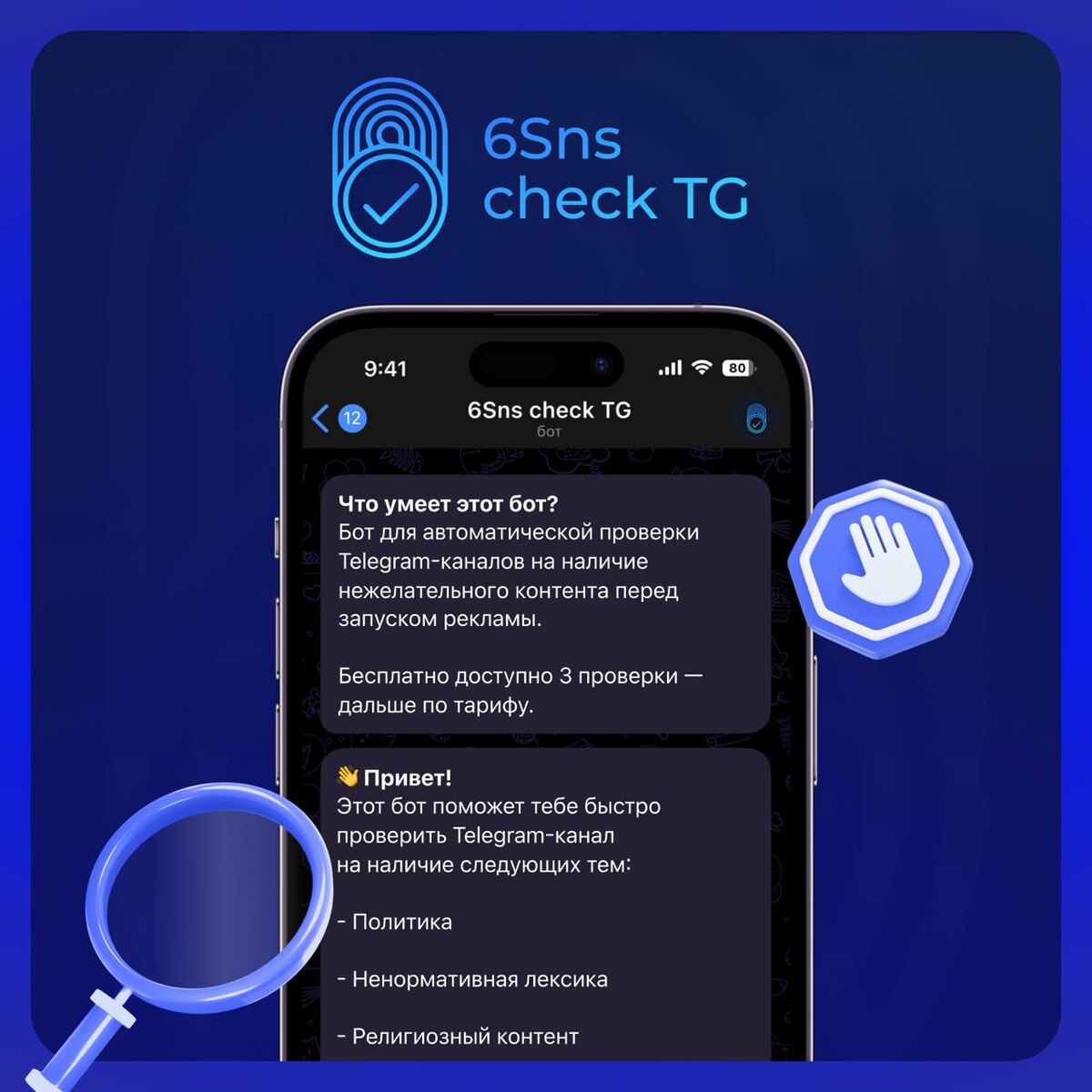 Привет! На связи Володя Мотин, я сооснователь бюро цифрового маркетинга 6Sns и аналитического сервиса RE:source. Мы с командой разработали бот, который проверяет Telegram-каналы на нежелательный контент: 🌀Политика 🌀Ненормативная лексика 🌀Религиозный контент 🌀Упоминание наркотиков Если вы, как и наш influence-отдел, закупаете рекламу в Telegram, то знаете, каково это: проверяли каналы руками, чтобы не нарваться на репутационные и юридические риски. Занимает часы, а то и дни 🥲 Теперь мы закидываем в бот ссылку на каналы и получаем мгновенный отчет в гугл-таблице со ссылками на все публикации, которые нарушают правила. Проверяйте каналы перед запуском рекламы в @TG_6Sns_bot Подписаться на RE:source