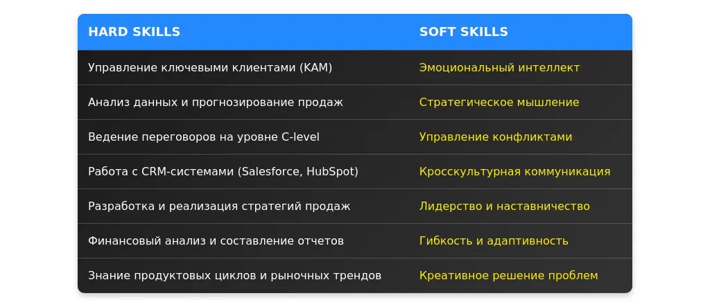 Пример 4: "Знание CRM-систем (Salesforce, HubSpot)". Это обязательное требование к техническим навыкам.