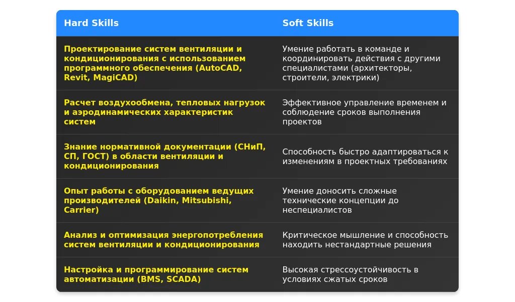 Технические навыки для инженера систем вентиляции и кондиционирования