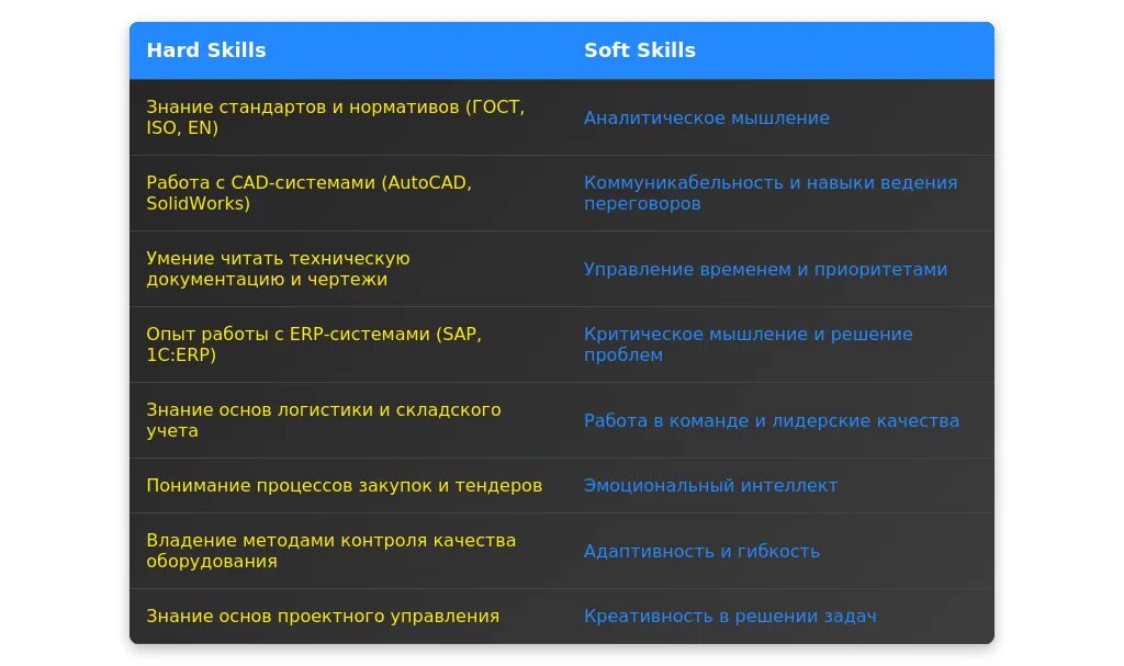 Анализ вакансии для инженера по комплектации оборудования