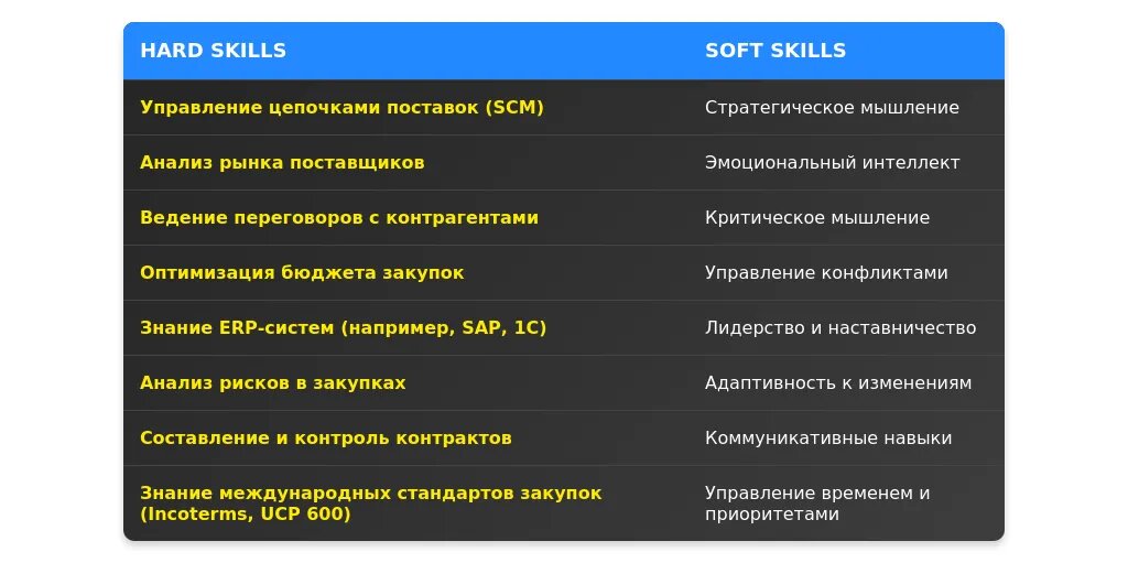- Аналитическое мышление: анализ данных для оптимизации закупок.
