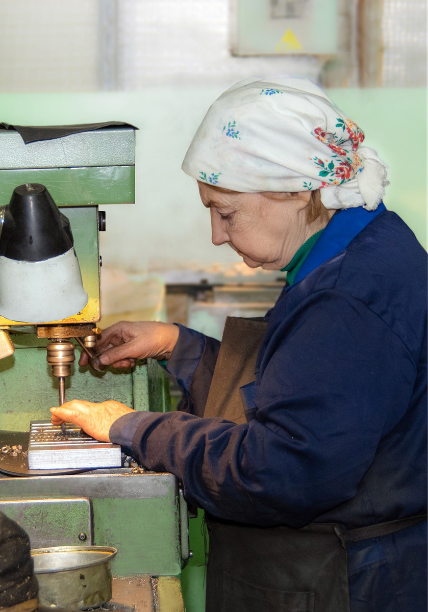 На предприятии ОСК Севмаш есть профессии, по которым трудятся буквально единицы рабочих. Например, профессия сверловщика. В механическом цехе 8 такой человек Лидия Николаевна Владимирова. Второго июня она отметила юбилейный день рождения. – Лидия Николаевна начинала учеником фрезеровщика, профессию осваивала на производстве, – рассказывает Ирина Резникова, мастер крепёжного участка цеха 8. – Позже перешла на сверлильный станок. И вот уже более пятидесяти лет трудится на одном месте. Сейчас в её распоряжении четыре сверлильных станка под разные размеры деталей. А деталей на участке выпускают тысячами, начиная от малюсеньких гаечек до крупных болтов, боночек. В каждой гайке нужно сделает фаску для дальнейшей нарезки резьбы, в болтах просверлить отверстия в стержне или голове… Словом, мелочёвка, но очень важная для техпроцесса изготовления крепежа. – Работа скрупулёзная, мелкая, монотонная, пожалуй, не каждый выдержит, – продолжает Ирина Валерьевна. – А Лидии Николаевне нравится, поэтому