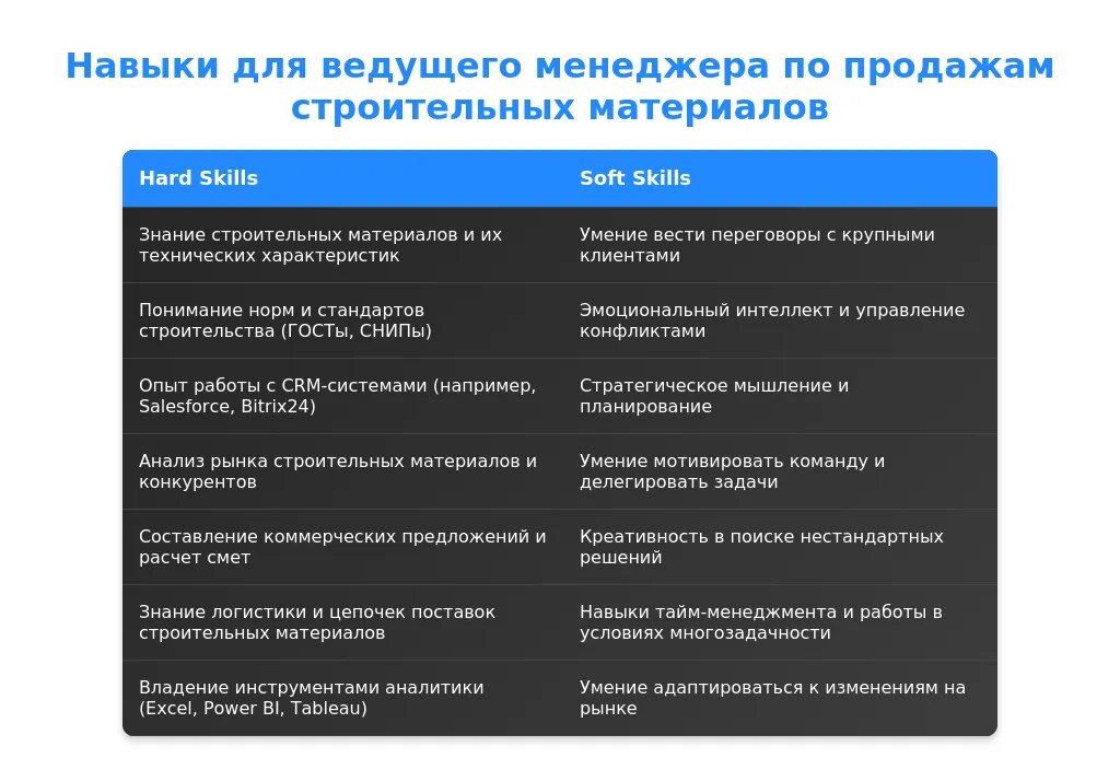 Анализ вакансии для ведущего менеджера по продажам строительных материалов
