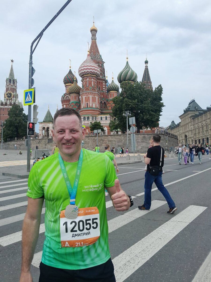 🔥 31 мая 2025 года отец наших учеников Дмитрий Табачков впервые принял участие в благотворительном старте «Зелёный марафон» в Москве и с блеском преодолел свою любимую дистанцию — 21,1 км (полумарафон) — за 1 час 35 минут и 5 секунд!