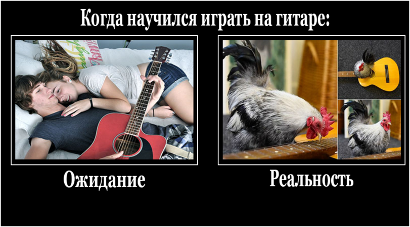 А потом пришла реальность. Лад не строит, гриф как лук, звук как у банки из-под персиков.