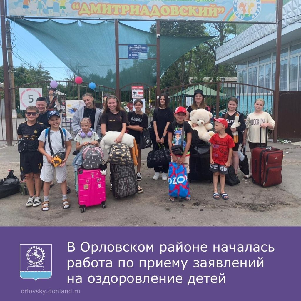 В Орловском районе ведётся работа по оздоровлению детей. Напоминаем, что с 01.01.2025 года уполномоченным органом по организации отдыха и оздоровления детей является Министерство образования Ростовской области. В управлении социальной защиты населения ведётся приём заявлений на оздоровление детей по путёвкам, закупленным Министерством образования Ростовской области по следующим направлениям: - детский оздоровительный санаторий «Дмитриадовский», Неклиновский район, пос. Дмитриадовский, 10 км. от г. Таганрога. Заезд с 24.06.2025 г. по 14.07.2025 г. - детский оздоровительный лагерь «Орленок», Ростовская область, Неклиновский район, с.Красный Десант. Заезд с 17.07.2025 г по 06.08.2025 г. - детский оздоровительный лагерь «Орленок», Ростовская область, с.Красный Десант. Заезд с 09.08.2025 г по 29.08.2025 г. Путёвки предоставляются Министерством образования Ростовской области для детей возрасте от 6 до 18 лет из малообеспеченных семей, детей лиц, призванных на военную службу по мобилизаци