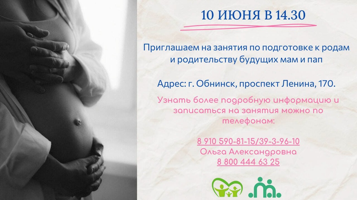 🤰🤱10 июня в 14:30 в центре «Милосердие» в Обнинске объявляется набор в группу по занятиям по подготовке к родам и родительству будущих мам и пап.