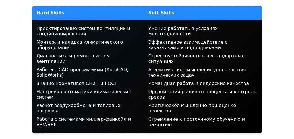 Технические навыки для техника по вентиляции и кондиционированию