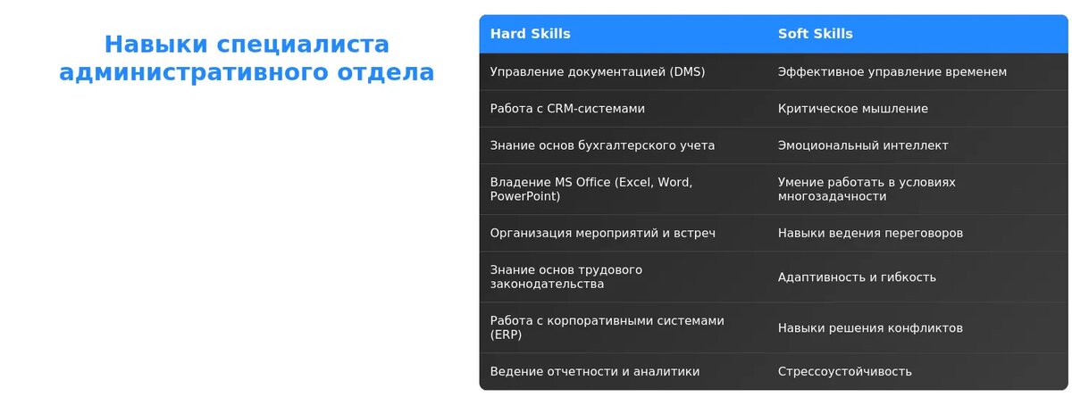 Сильные стороны: акцент на личные качества, которые важны для административной работы.