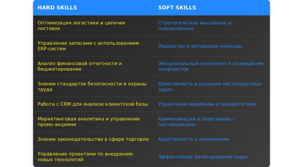 Обязательные навыки для профессии "управляющий гипермаркетом":