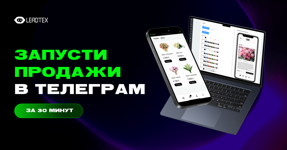 Leadtex - no-code платформа, с помощью которой можно собрать Telegram-бота и Mini App-магазин буквально за 30 минут. Без серверов, программистов и сложной документации.