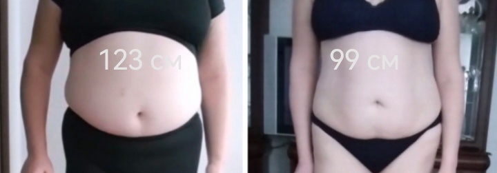 ИТОГО: За последние 7 месяцев я сбросила 26,5 кг общего веса и вместе с ним ушёл объем с талии/живота на 23 см.