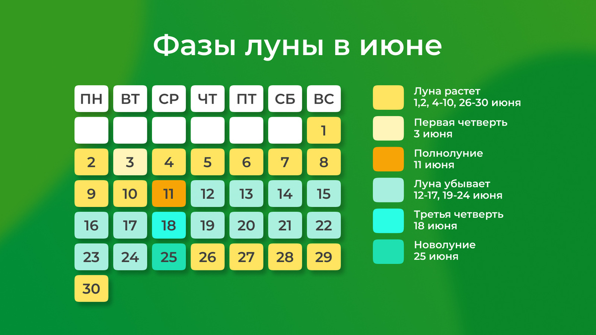 Публикуем лунный календарь на июнь! Он поможет вам максимально эффективно использовать энергию Луны. В календаре вы найдете рекомендации по благоприятным дням для посева различных культур. Узнайте, когда лучше всего сажать овощи, цветы и другие растения, чтобы получить наилучшие результаты. Листайте карусель и смотрите лунный календарь на июнь!