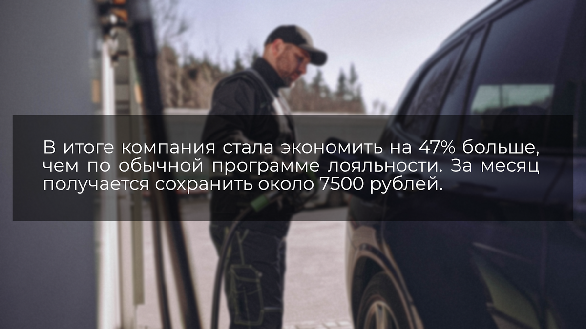 Топливные карты – это, безусловно, полезный инструмент, позволяющий компаниям сократить расходы на топливо. Но он не лишен недостатков. Например, топливные карты никак не могут исключить возможности мошенничества со стороны водителей. Решение: сервис Яндекс Go для бизнеса. Он помогает лучше контролировать водителей, а еще ощутимо экономит деньги благодаря выгодной скидке и дополнительным бонусам. Три предпринимателя поделились историями, как он помог им сэкономить на бензине. Средний расход топлива у компании — 10 000 литров в месяц, при этом на него уходит примерно 500 000 рублей. Раньше директор пытался экономить с помощью 2%-ной скидки от крупной сети АЗС — на первый взгляд это казалось выгодным решением. Однако вскоре обнаружились минусы: водители были привязаны к заправкам одного бренда, поэтому иногда по пути им приходилось делать ненужный крюк. Плюс оказалось, что скидка в 2% доступна только при заправке от 8000 литров в месяц. Если нужно было меньше, дисконт опускался до 0,5%.