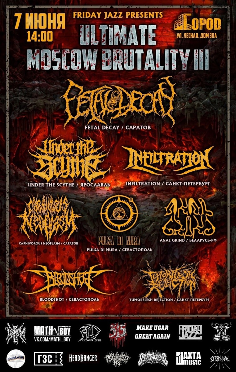 Мск 2025.06.07 Fetal Decay / Infiltration/ Under the Scythe / Anal Grind / Tumorflesh Rejection / Carnivorous Neoplasm / Pulsa Di Nura