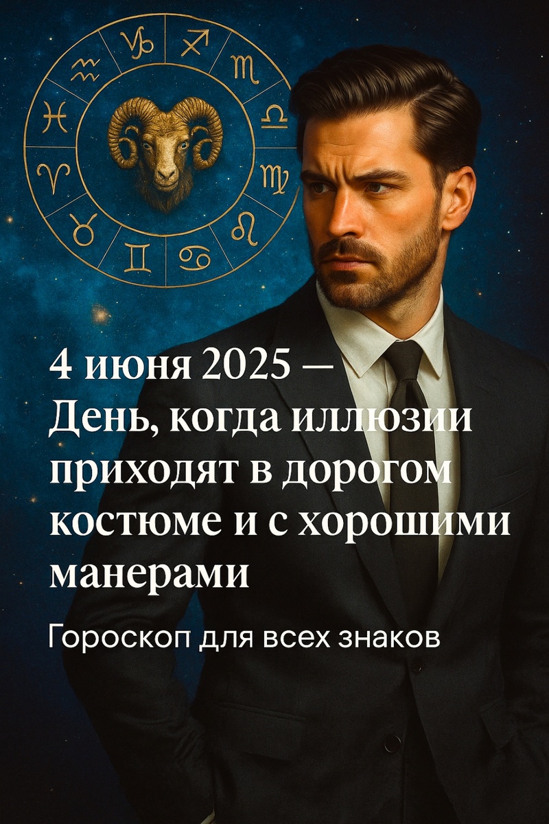4 июня — это как вечер в элитном клубе, где вино дорогое, но послевкусие подозрительное. Солнце и Меркурий в соединении в Близнецах — информация пышет интеллектом, но может не иметь отношения к реальности. Луна сначала в Деве, соединяется с южным узлом: поднимаются старые схемы поведения, где вы всегда спасали, анализировали и ничего не чувствовали. После 16:40 по МСК — переход в Весы, хочется мира, но космос шепчет: «Осторожно. Не всё, что сбалансировано, — честно». Два тау-квадрата (Юпитер, Луна, Сатурн/Нептун и второй — Меркурий с узлами) + Секира с Чёрной Луной в Скорпионе — это как пройти лабиринт из зеркал, где отражение с ножом за спиной оказывается тобой. Не драматизируй. Просто смотри внимательнее. — сегодня не всё то истина, что звучит уверенно. Ты сегодня будто знаешь ответы на вопросы, которые никто ещё не задал.