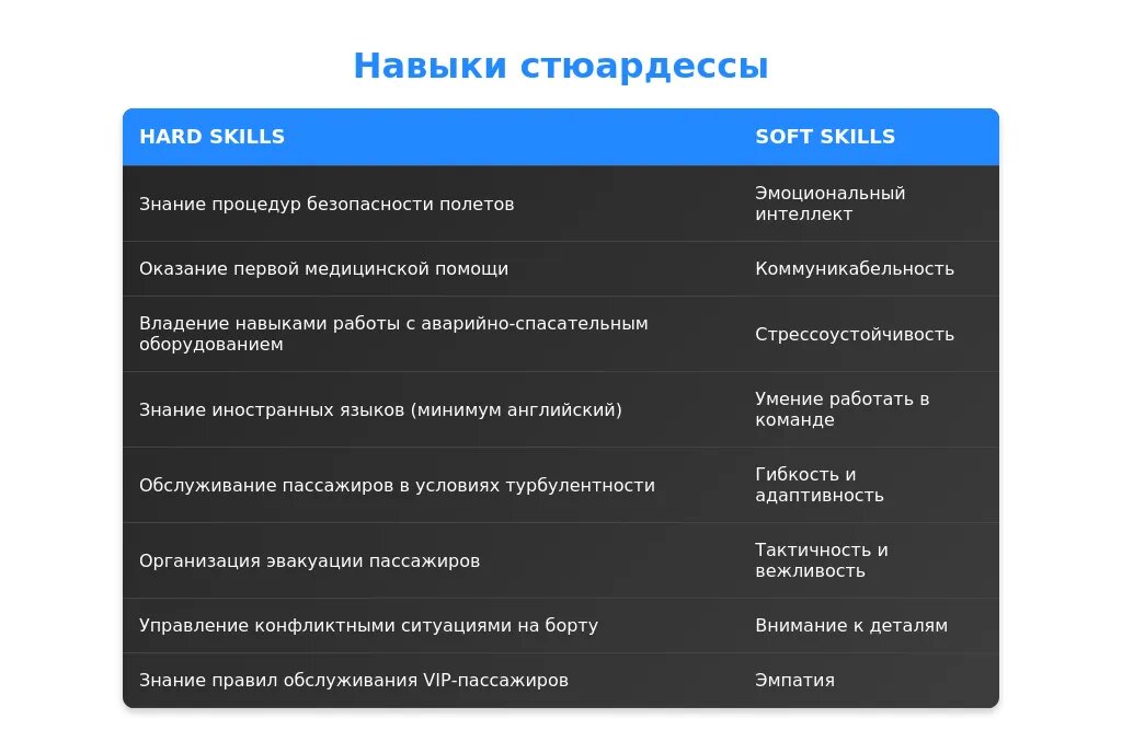 Анализ требований вакансии для профессии "стюардесса"