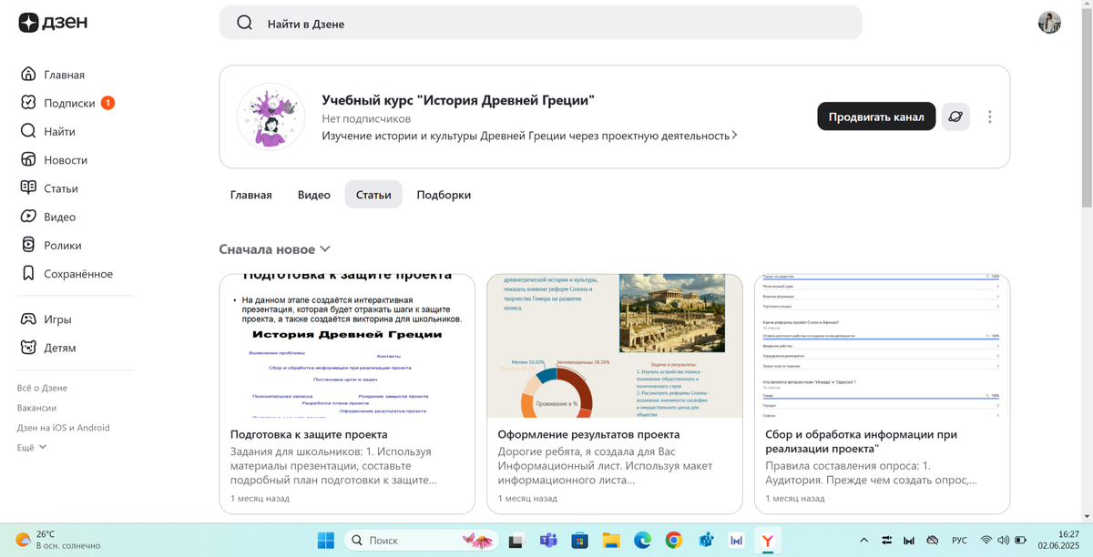 Целевая аудитория: Данный курс предназначен для школьников 9-11 класса, студентов и всех, кто интересуется историей Древней Греции. Предмет: история, с акцентом на изучение древней Греции через проектную деятельность. Темы: 1. Вклад древнегреческих учёных в науку и культуру. 2. Формирование демократии в Афинах и социально-политические отношения. 3. Повседневная жизнь и быт древних греков. Используемые технологии мультимедийной поддержки: компьютер, приложение OpenOffice Impress, интернет-ресурсы, интерактивные элементы, Monosnap. А также инфографика, интерактивная карта, хронолиния. Наиболее ярким моментом, на мой взгляд, является создании хронолинии - https://udoba.org/node/206827 Вторым ярким моментом является создание интерактивной карты. Третьим ярким элементом является создание видеоролика на выбранную тему.