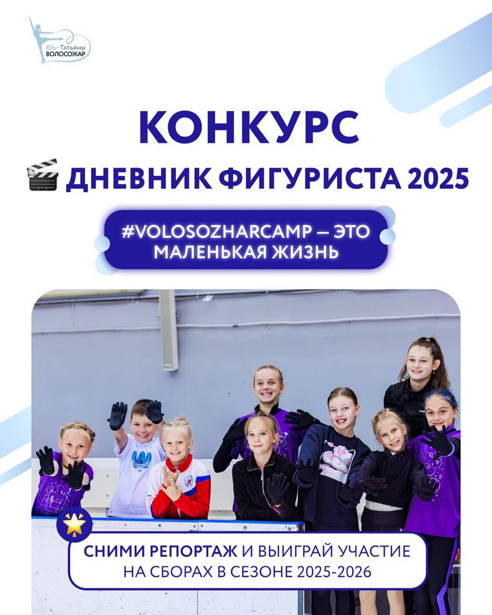 КОНКУРС НА БЕСПЛАТНОЕ УЧАСТИЕ В СБОРАХ 2025-2026🔥 Сними свой «Дневник фигуриста 2025» на #volosozharcamp! Это больше, чем просто сборы — это маленькая жизнь, полная тренировок, дружбы, открытий и плодотворной работы. Расскажи свою историю в формате влога — и пусть её увидят другие фигуристы по всей стране! 📲 Условия участия: — Формат видео: влог (горизонтально), клип/рилс (вертикально) — Следуй структуре (см. ниже) — Опубликуй видео в соцсетях (VK/IG) с хештегом #volosozharcamp и #сборыэтомаленькаяжизнь — Отметь и подпишись на наш аккаунт @volosozharcamp — Публикации принимаются до 5 сентября 2025 года 🔻 Структура видео: 1. Приветствие: имя, город, возраст 2. Подготовка: сборы чемодана, ожидания 3. Приезд: жильё, открытие сборов, новые друзья 5. Тренировки: что узнал, над чем работаешь. Кто твой тренер? Как проходят тренировки? 6. Жизнь вне льда: отдых, прогулки 7. Звёзды: кого встретил, чем вдохновили 8. Результаты: чему научился, пожелания другим Мы выберем самое подробное
