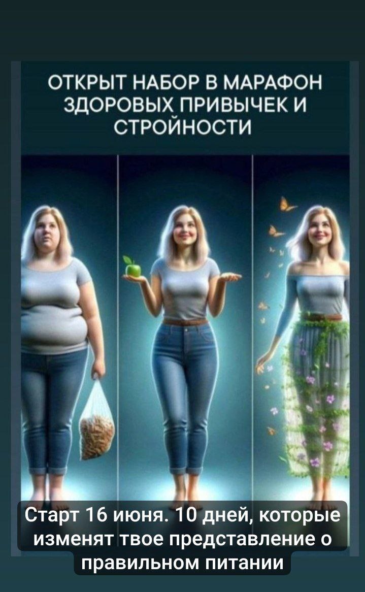 ❗️ВНИМАНИЕ❗️ 16 июня ЭКСПРЕСС марафон ЧТО ТЕБЯ ЖДЁТ ⬇️ ✅«PRO тело» — Узнай настоящие причины возникновения проблем с фигурой. ✅«Секрет твоей тарелки» — Что и сколько нужно в неё складывать. Как контролировать . ✅«Гигиена сна, циркадные ритмы» — Как похудеть во сне . ✅«ДЕТОКС"- что это такое на самом деле, как делать правильную очистку организма ✅ " Включаем режим " Антистарение"-как вернуть и/или сохранить молодость. КАК ЭТО БУДЕТ РАБОТАТЬ? 🔹 Закрытый чат 💬 с ограниченным числом участников 🔹 Практические задания с мгновенным результатом 🔹 Поддержка кураторов 🔹 5 уроков по питанию без воды 💦 🔹 Подарки 🎁 рецепты и план питания! 📅 Старт: 16 июня ⏰ Продолжительность: 10 дней 💰 Стоимость: 600₽ ⏳ Количество мест ограничено — успевай занять своё! 👉 пиши "хочу" или пиши в личку @mitskevichnatali