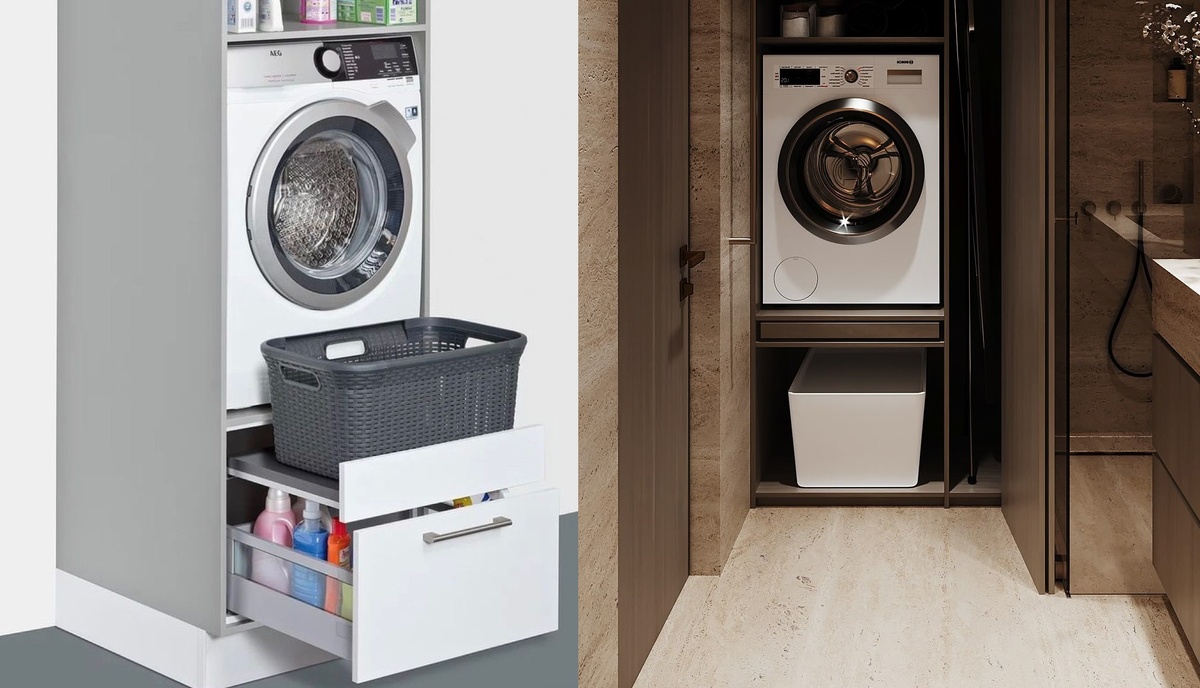 Их можно внедрить в любой квартире — от типовой «двушки» до крошечной студии. Сколько раз вы наклонялись, чтобы достать мокрое белье из машинки? А теперь представьте: дверца на уровне груди, бельё — прямо перед глазами. Подставка под машинку делает именно это. Да, для кого-то потеря колонки «стиралка + сушка» — ощутимая жертва. Но в большинстве типовых квартир этой колонки просто нет. Зато с приподнятой машинкой не нужно сутулиться каждый раз. Под ней можно устроить выкатную корзину для грязного белья, отдел для порошков и прочей бытовой мелочи. А если добавить выдвижную полку – бельё удобно сразу разложить в таз или корзину. Есть готовые модули, которые не надо заказывать у мебельщиков — ставишь и пользуешься. Маленькое удобство, которое каждый день экономит силы. Тради
