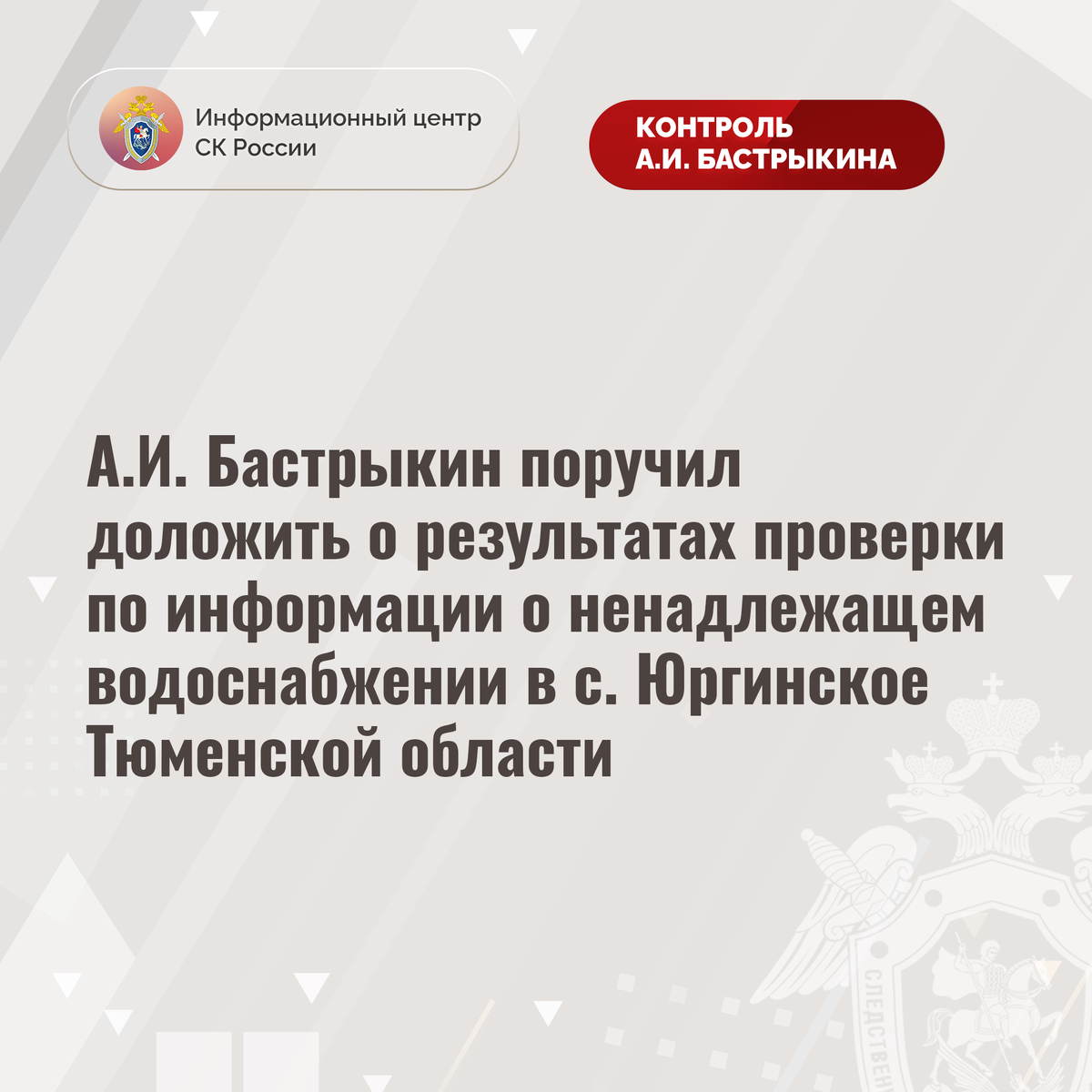 А.И. Бастрыкин поручил доложить о результатах проверки по информации о ненадлежащем водоснабжении в с. Юргинское Тюменской области