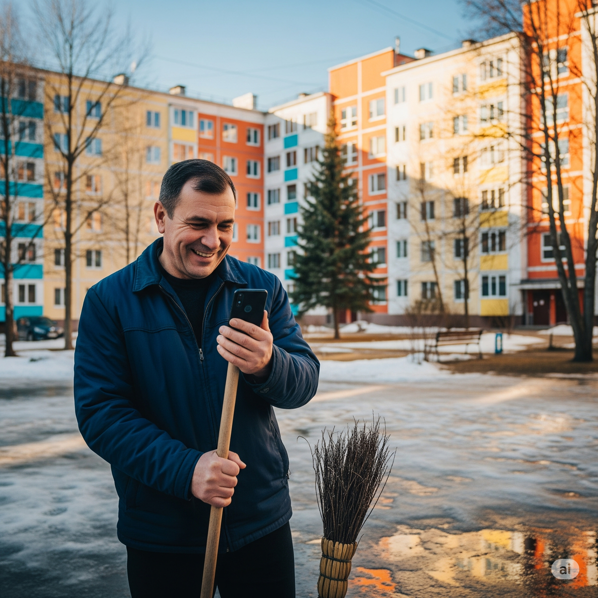 С первого же дня Хандил стал частью двора. Не просто дворником — именно частью, как скамейки, как детская площадка, как старые тополя вдоль забора. К семи утра он уже работал: подметал дорожки, мыл урны, поливал клумбы. А параллельно разговаривал.