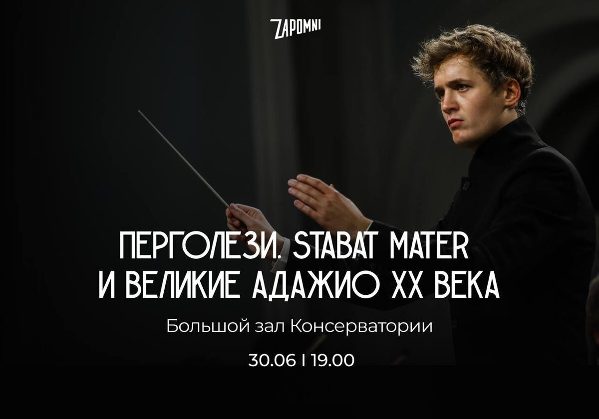 Запомни Интертейнмент организует вечер «Перголези. Stabat Mater и великие адажио XX века» 30 июня I 19:00 Большой зал Московской консерватории Симфонический оркестр «Академия русской музыки» Художественный руководитель и главный дирижер – Иван Никифорчин. Солистки Большого театра: º Лада Меркульева (сопрано) º Ульяна Бирюкова (меццо-сопрано) Центральное произведение Stabat Mater Дж.Б. Перголези — высокий образец итальянского барокко, который передает трагедию через гармонию и мелодию, сыгравший значительную роль в развитии духовной музыки. В программе также: º Адажио Альбинони/Джадзотто º Адажио для струнных Сэмюэла Барбера º Адажиетто из Пятой симфонии Густава Малера 🎫Билеты можно приобрести по ссылке