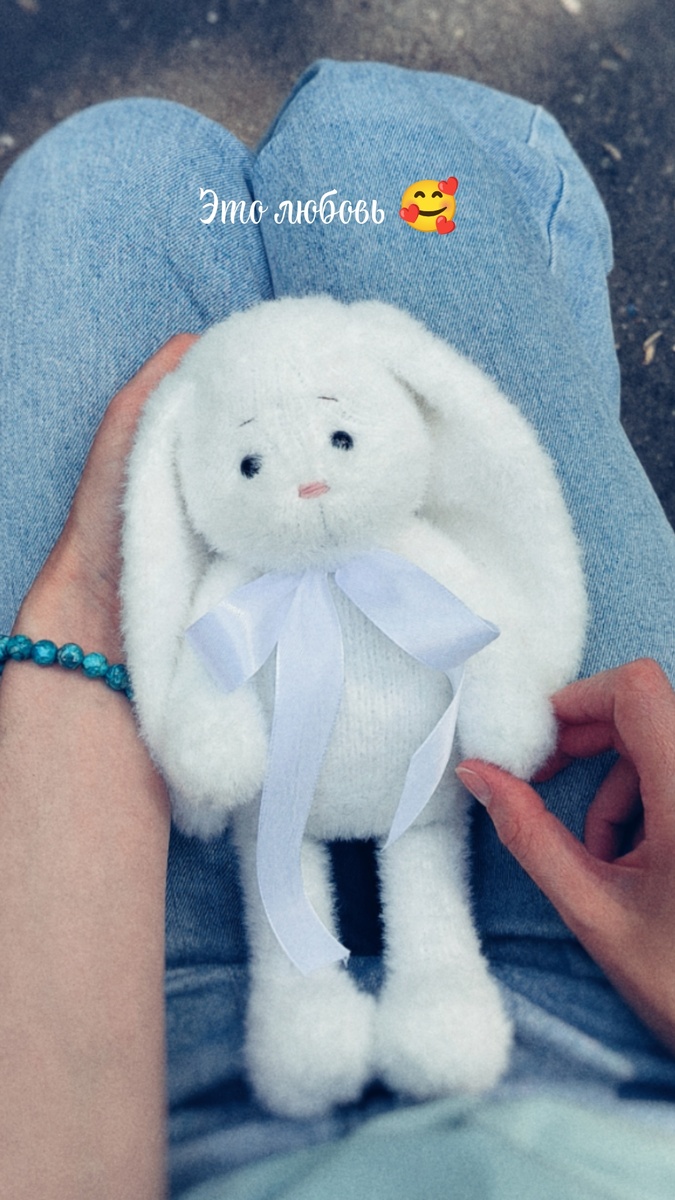 Ещё год назад я говорила, что никогда не буду вязать игрушки спицами. Встречайте, моя первая игрушка спицами🥰 и я счастлива, что у меня всё получилось (не без косяков, но я всё ещё учусь). Зайка моя любовь 🥰, никому не отдам 😄
