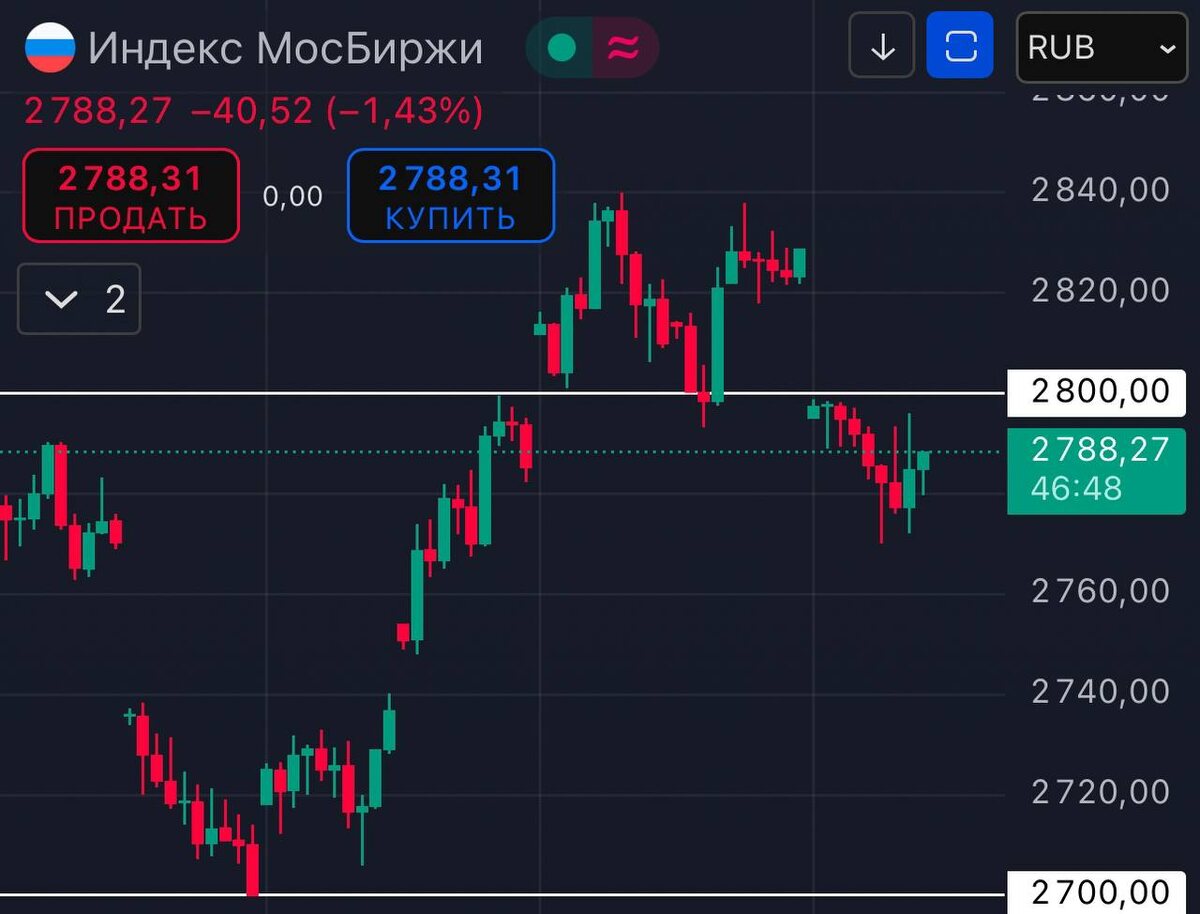 ❗️ Долго, долго все стоит в боковике, однако в моменте индекс пытается подрасти. В целом, если часовик так закроет, то есть вероятность роста в сторону уровня гэпа 2820. Главное таким образом закрыть час, иначе все будет по другому!