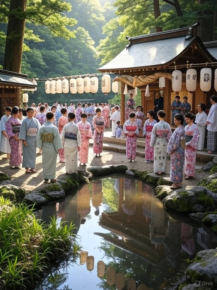 - Религиозные ритуалы в Японии часто воспринимаются как культурные традиции, укрепляющие семейные и общественные связи. Участие в фестивалях или обрядах, таких как Обон (буддийский праздник поминовения предков), рассматривается как способ поддержания гармонии, а не как выражение веры. Это делает ритуалы значимыми даже для тех, кто не считает себя религиозным.
