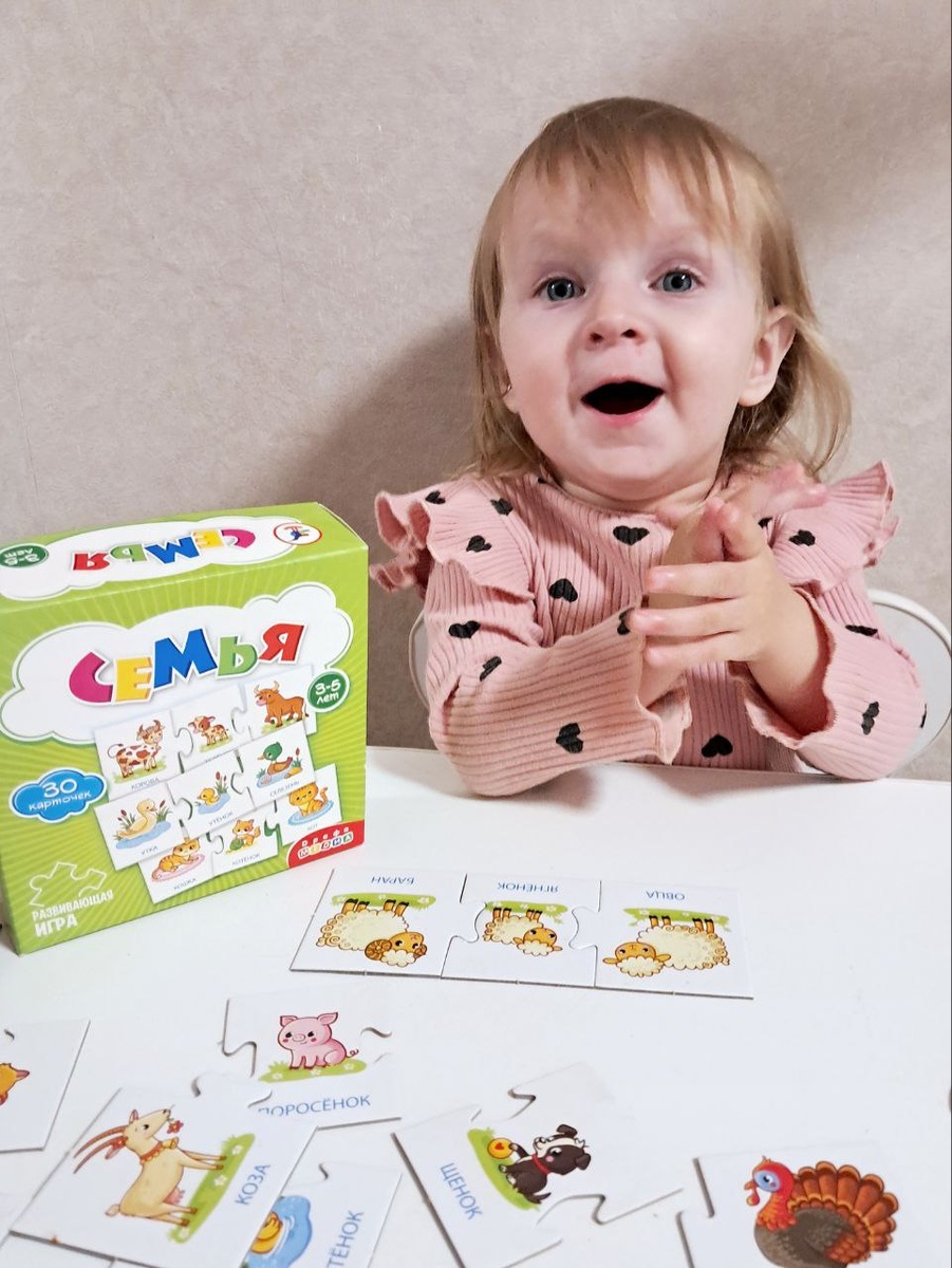 🙂🙂🙂🙂🙂🙂 София активно знакомится с домашними животными и их детёнышами.Ранее мы уже использовали пазлы,рамки-вкладыши,сами фигурки животных и другие обучающие пособия. А в этот раз взяли пазлы,состоящие из трёх деталей.🧩 🙂Пазл сложился,когда в линии мама,папа и малыш!🙂 Всего в коробочке поселилось 🙂🙂 семей.А если вдруг вы и сами забыли,как,например,называется детёныш лошади или отец утёнка,то на каждой детальке пазла подсказка. А также каждый пазл помогает детям не только развлекаться, но и развивать важные навыки. Такие как: 🙂Мелкомоторные навыки 🙂Логическое мышление 🙂Внимание и концентрация 🙂Усидчивость 🙂Знания о животных 🙂Социальные навыки 🙂Творческое мышление; Обожаю,когда дети сконцентрированы на занятии,и с большим интересом наблюдаю за их действиями и рассуждениями,наслаждаясь обучающим моментом.✨